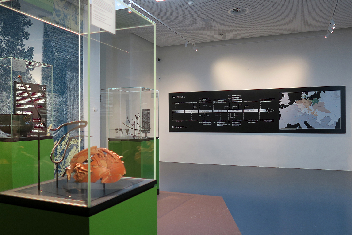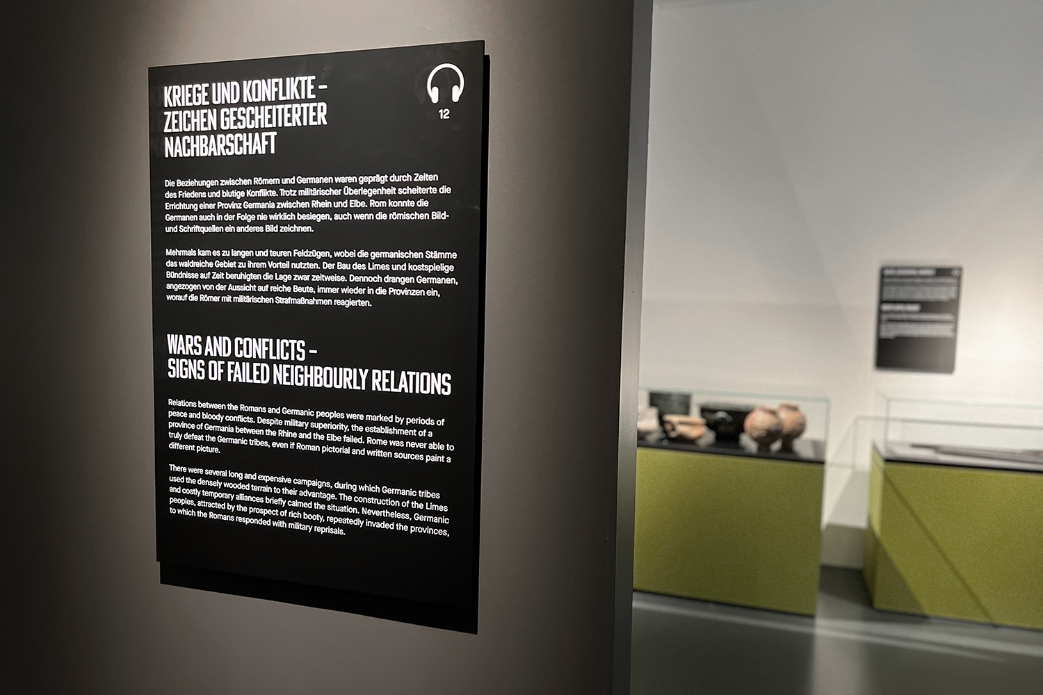 Römer und Germanen handelten, stritten und begegneten sich über Jahrhunderte hinweg. Ihr Verhältnis war geprägt von Austausch, Konflikten und gegenseitiger Faszination. Davon erzählt die große Sonderausstellung im Limesmuseum Aalen. Rund 200 Exponate, darunter kostbare Schätze aus germanischen Fürstengräbern, geben Einblick in diese vielschichtige Beziehung.