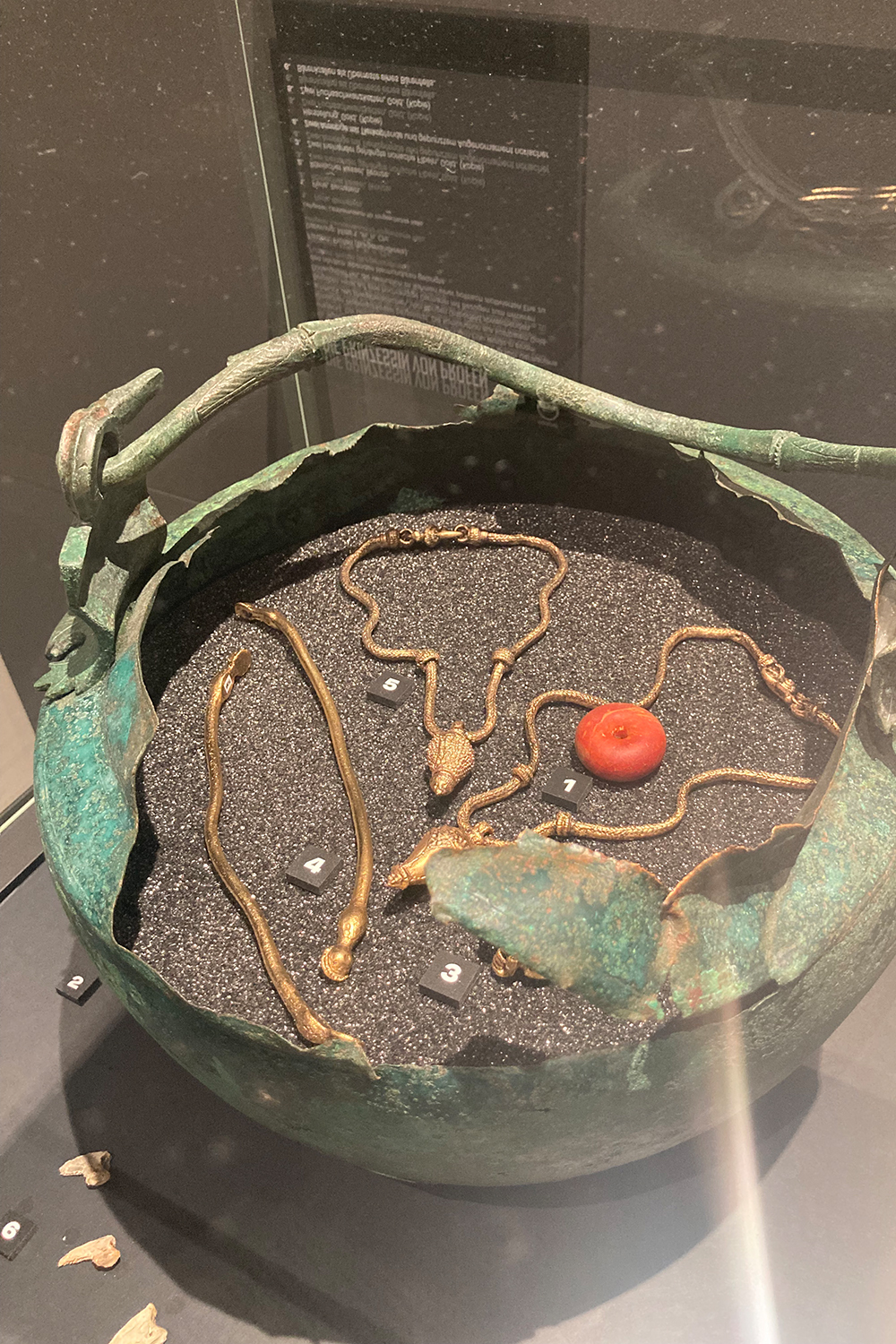 Zu den Höhepunkten zählt ein römischer Bronzekessel aus einem Fürstengrab in Kariv (Westukraine), datiert in die zweite Hälfte des 2. Jahrhunderts nach Christus. Dieses außergewöhnliche Fundstück gilt als einer der wertvollsten Schätze der Ausstellung.