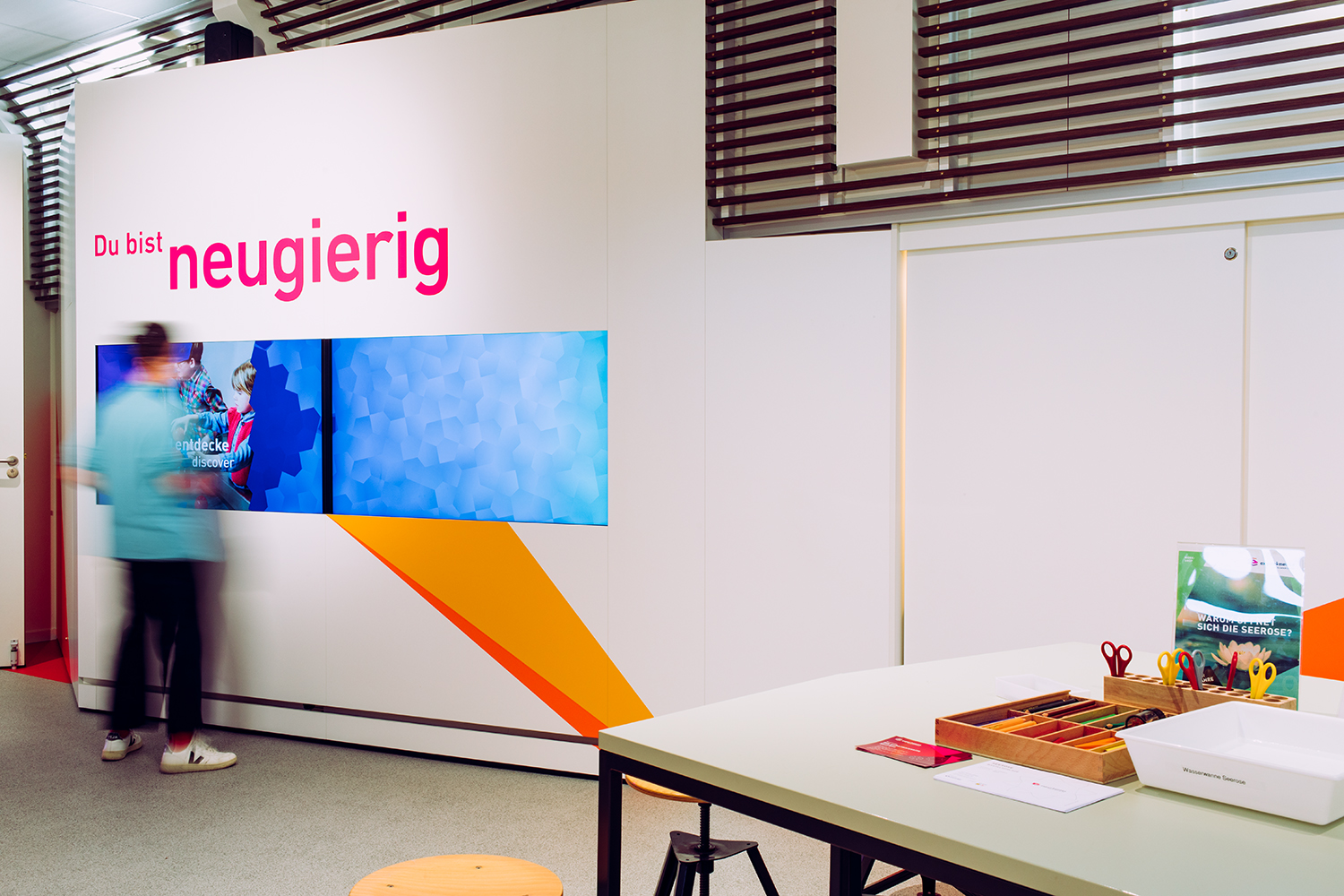 zwo-elf wurde für die komplette Inszenierung des Schiffes und die Gestaltung der Mitmachstationen beauftragt. Alle bereits bestehenden Experimentierstationen wurden einheitlich umgestaltet und in das Gesamtkonzept integriert. So entstand eine einzigartige, schwimmende Erlebniswelt, die nun seit Juli 2020 auf den Flüssen der Bundesrepublik unterwegs ist.