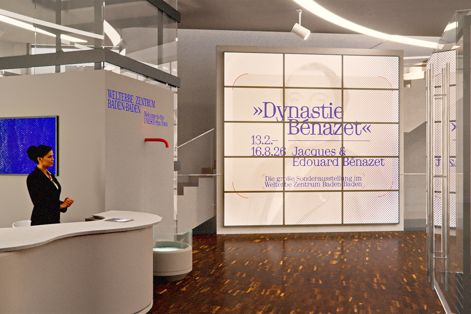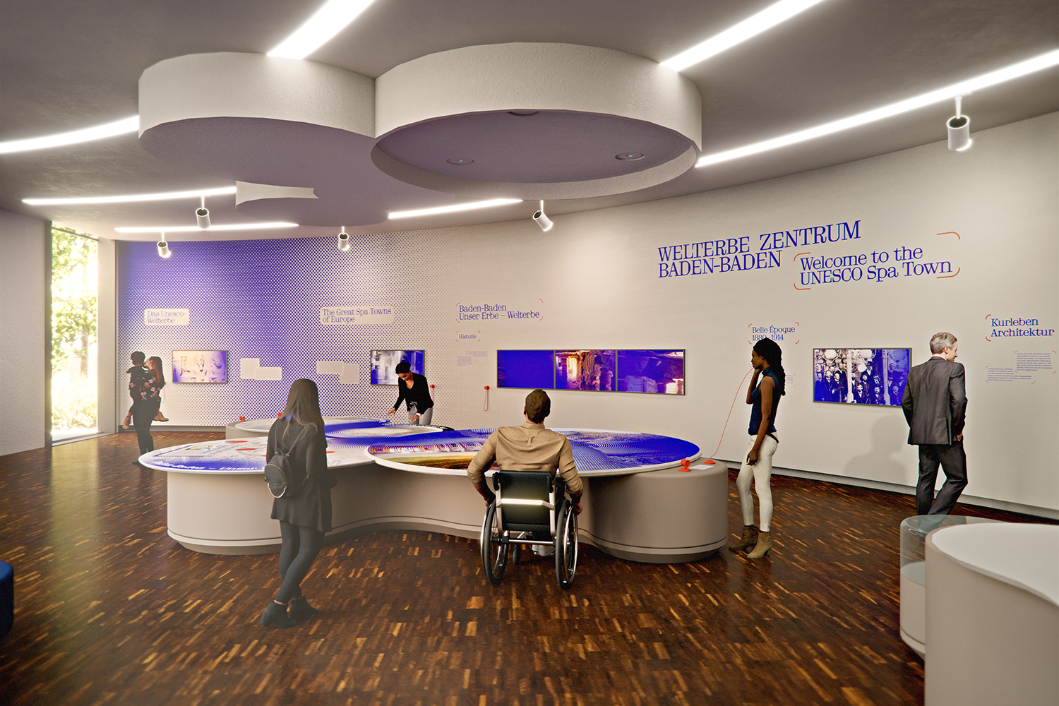 Um die Auszeichnung sichtbar zu machen, beschloss die Stadt Baden-Baden, das Museum im Kurhaus LA 8 in der Lichtentaler Allee in ein Welterbe Zentrum zu verwandeln. Wir durften uns mit unserem Gestaltungskonzept am ausgeschriebenen Wettbewerb beteiligen und Ideen für einen modernen, lebendigen und zugänglichen Ort der Welterbe-Vermittlung entwickeln.